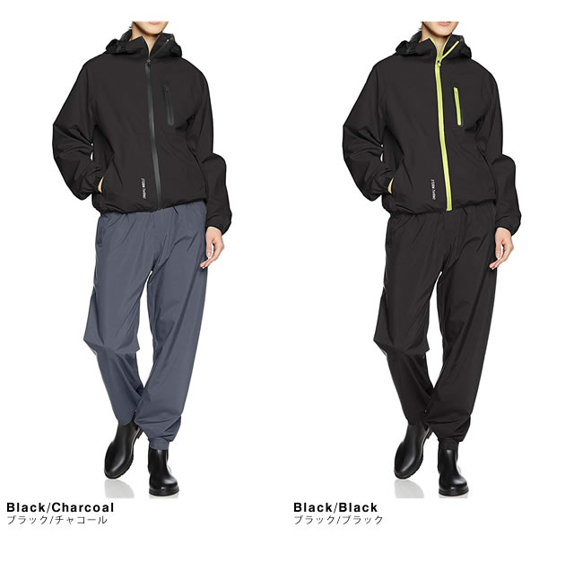 徹底防水とファッション性、動きやすさを追求した上下セットの雨具。
