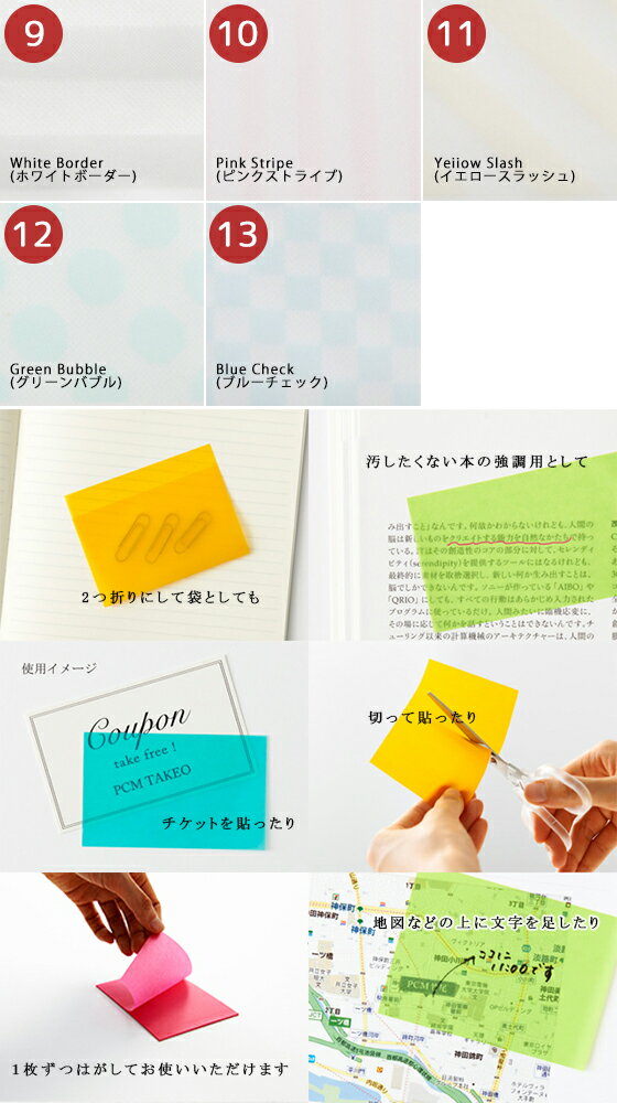 透ける紙の特性をいかした使い方が魅力の付箋です。